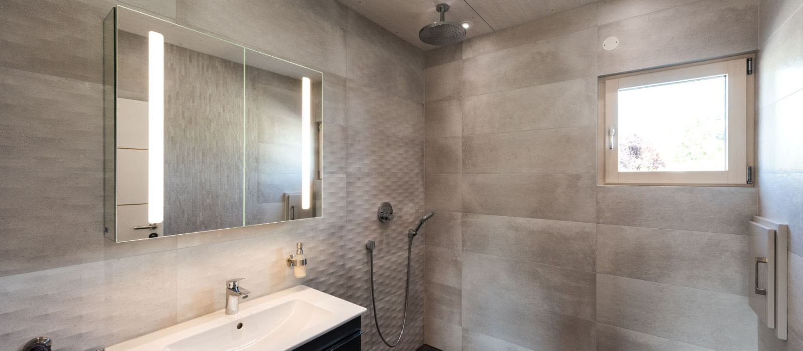 | Details/Extras | Außenwand als Ökowand mit Installationsebene, Fassade als Putzfassade in Weiß-Grau, Gipsfaserplatten, Verschattung mit Rollläden/ Jalousien, sichtbare Brettstapeldecke |